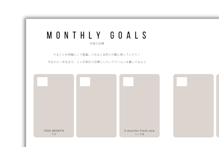 今後の目標設定:1ヶ月単位で目標にしたいアクションを書き出して、TRUE-SELF JOURNALを終えた後の自分の動きをイメージします。